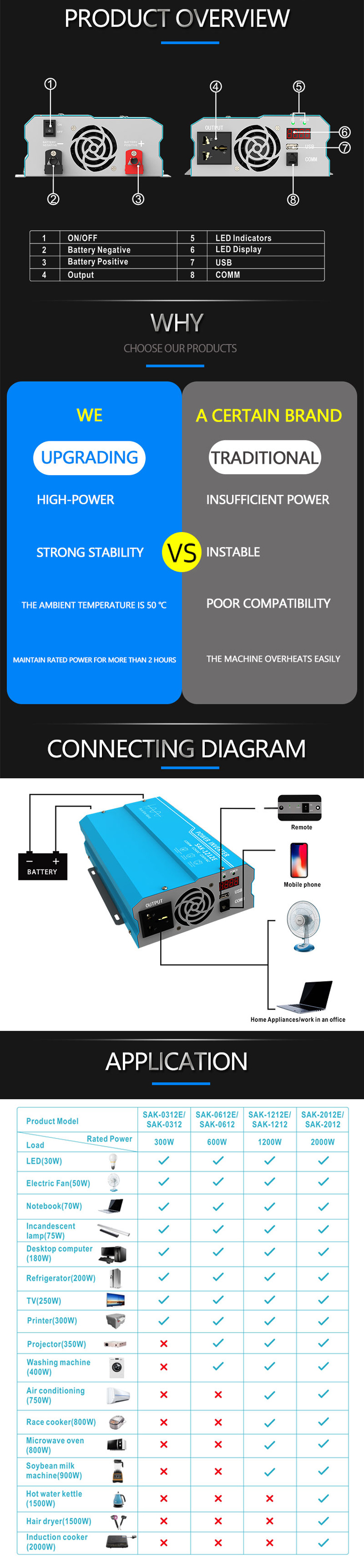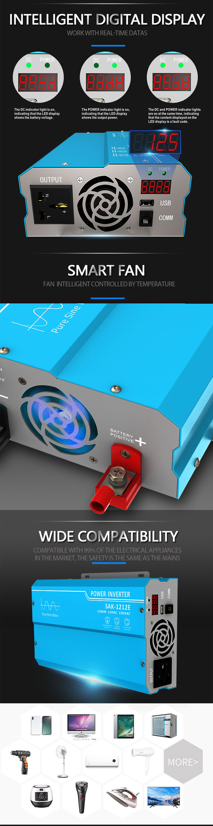 - Inverter Sumry dùng cho thiết bị điện gia đình như đèn thắp sáng, tivi, dàn CD, Video, dàn máy vi tính, tổng đài điện thoại, máy fax, quạt máy, tiệm internet …
