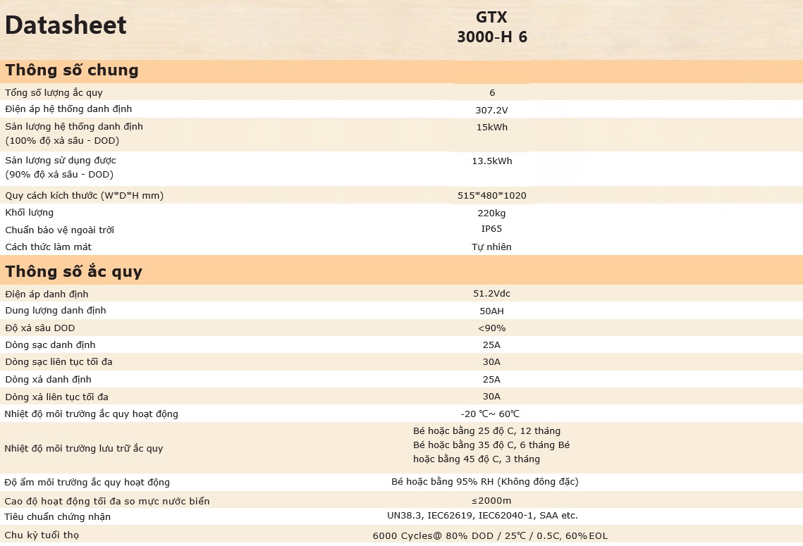 Thông số kỹ thuật Pin lưu trữ Lithium Sofar 15KW (GTX3000-H6) 3pha