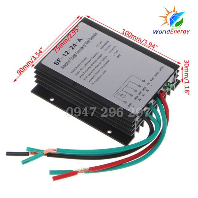 * Bộ điều khiển sạc (tuabin) năng lượng gió 300W/12V không thấm nước được thiết kế để sạc bình ắc quy bằng cách sử dụng năng lượng được tạo ra từ tua bin gió. Bộ điều khiển liên tục chuyển đổi đầu ra ba pha AC từ một máy phát điện gió thành đầu ra DC, sẵn sàng để sạc một hệ thống ắc quy 12V