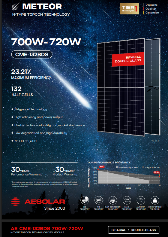 1. Tổng quan về tấm pin AE Solar 710W (Double Glass Bifacial)